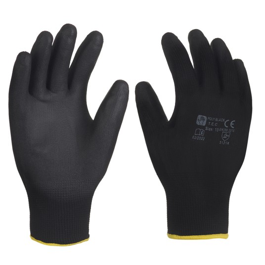 Rękawice powlekane PU czarne POLY BLACK 10