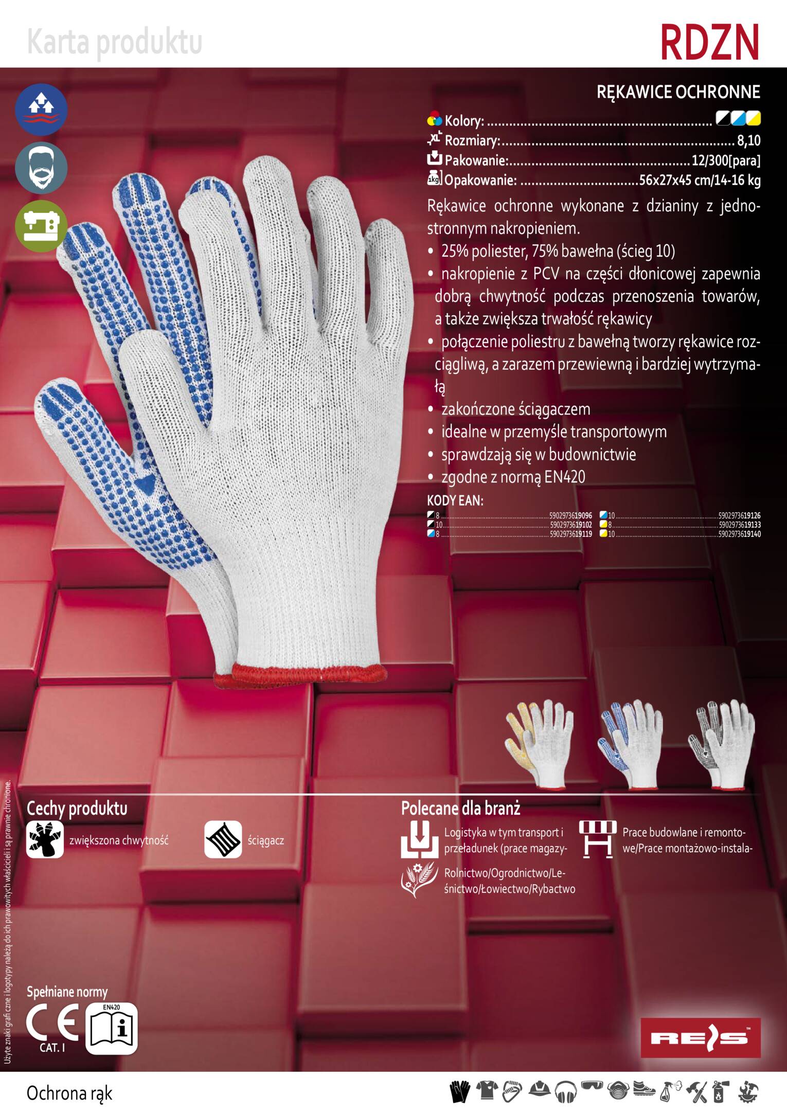 Rękawice dziane nakrap. jednostronnie RDZN / Perry