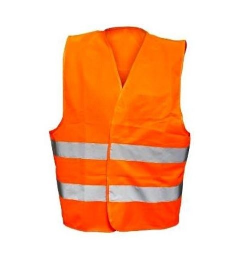 Kamizelka ostrzegawcza z dwoma poziomymi pasami odblaskowymi.