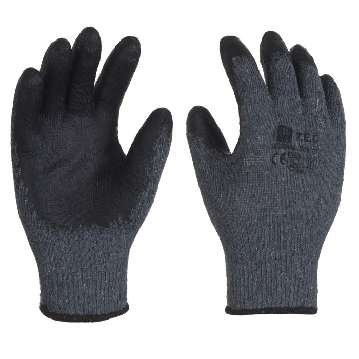 60% polyester / 40 % bawełna powlekane lateksem jakość ekonomiczna dziana bezszwowo odporne na brud, solidne i tanie dobrze dopasowujące się, anatomiczny kształt odporne na poślizg, dobra przyczepność pakowanie: 12 / 240 par